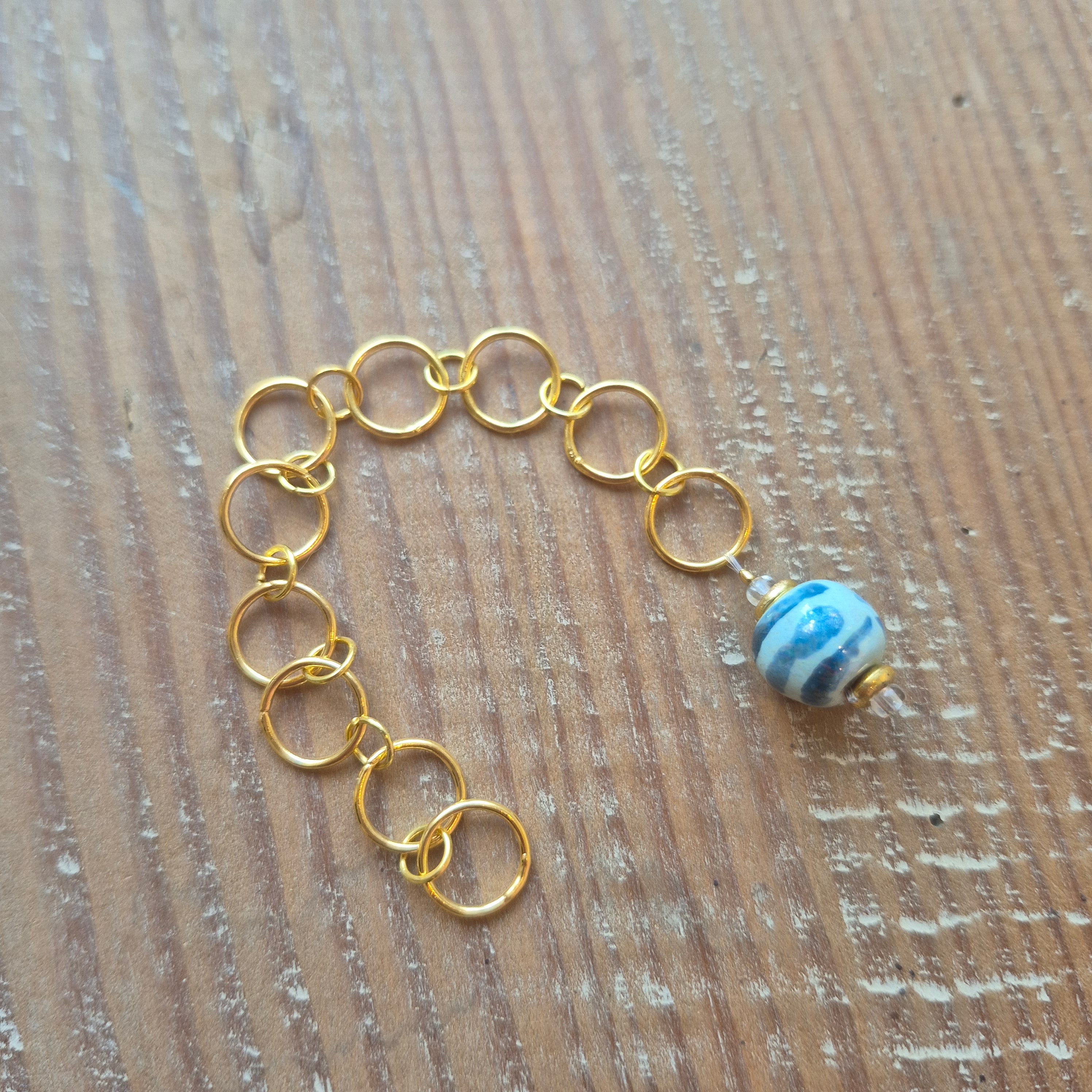 Giv dit strikkeprojekt et unikt touch med håndlavede strikkefisk, skabt af overskudsperler for at minimere spild. Hver perle er håndtrillet og malet af dygtige afrikanske kunsthåndværkere på Kazuri's værksted i Kenya. Kazuri beskæftiger enlige mødre under gode forhold og fair løn, hvilket sikrer deres børns skolegang. Med en strikkefisk fra Kazuri investerer du i tidløst design, håndværk og en historie med hjerte.