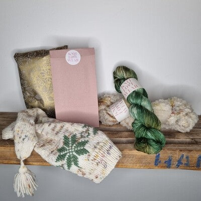 Kom i julehumør med Knit Love Wear’s Nissehue kit. Nissehuen er en enkelt nissehue i 2 farvet mønsterstrik, inspireret af det norske Nancy mønster. Huen strikkes nedefra og op i glatstrik og afsluttes med en ribkant og en kvast.