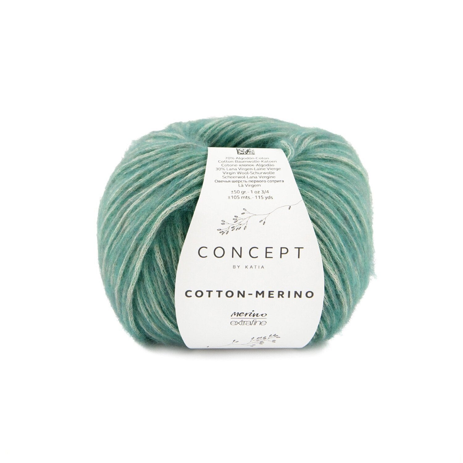 Cotton Merino fra Katia er et super lækkert blødt og luftigt blow garn. Det findes i mange lækre pastelfarver og er spundet af 70% bomuld og 30% Extrafine Merino.