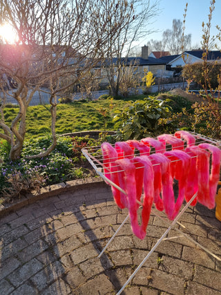 Alt vores garn er farvet i hånden og hvert fed er unika.