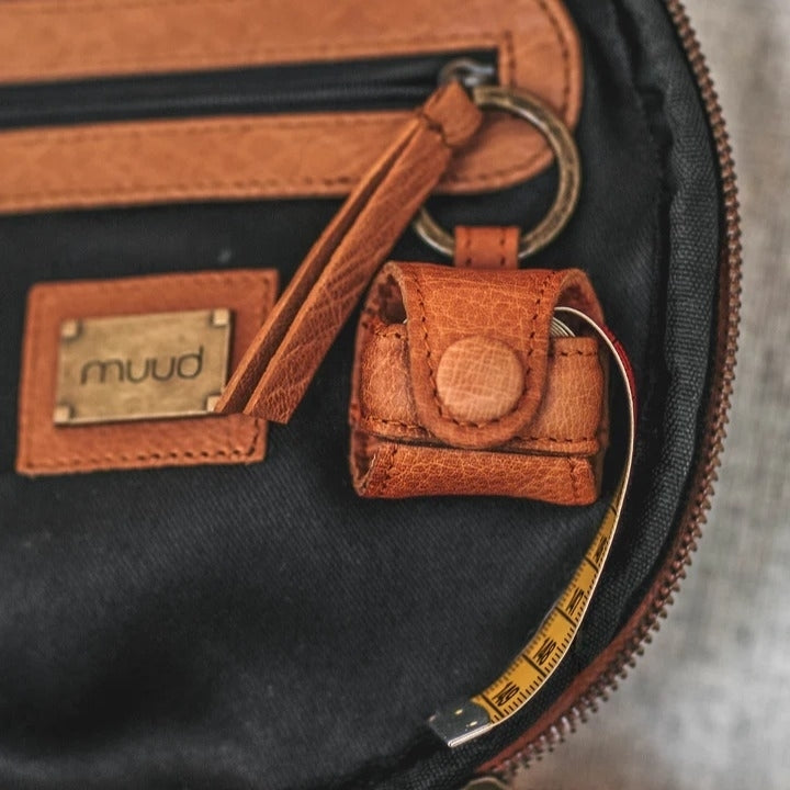 Det praktiske etui er håndlavet i kvalitetslæder og er til dig, der ikke vil gå på kompromis med kvalitet og godt håndværk. Det lukkes med en trykknap og har en nøglering, så du kan fastgøre etuiet til en taske eller lignende. På den måde har du altid dit målebånd ved hånden.